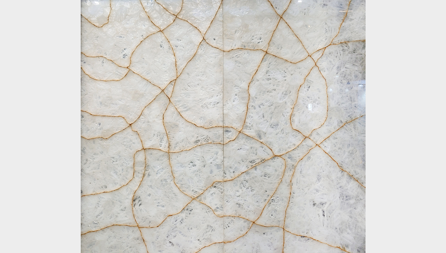 QUARTZ WHITE CRYSTAL - WITH GOLD LINES BOTH SIDES IDENTICAL AND POLISHED - Detail